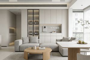 极简酒柜无拉手造型设计,四维星拖拽试搭贴合全屋风格
